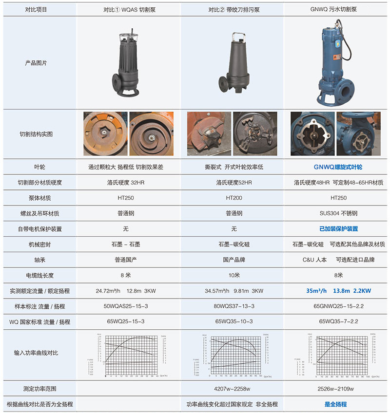 GNWQ切割排污泵與市場(chǎng)上其它切割泵的對(duì)比