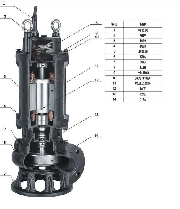 六、WQ潛水式無堵塞排污泵(結構圖)